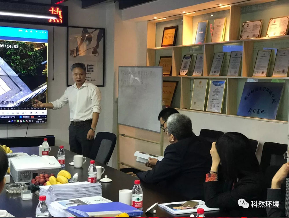 聽取匯報(bào)后,領(lǐng)導(dǎo)和浙江科然環(huán)境科技股份有限公司董事長(zhǎng)黃利林進(jìn)行了交流,認(rèn)真仔細(xì)的了解公司的發(fā)展情況和研發(fā)技術(shù),
